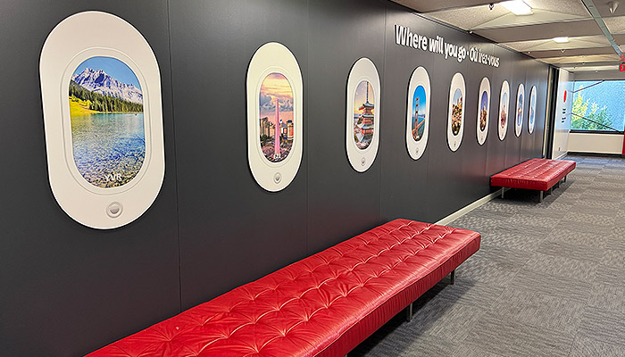 We install permanent branding features and architectural signage integrated into interior buildouts—often in coordination with designers and GC teams. These can include wall-mounted displays, brand storytelling walls, material layer signage, timeline panels, and donor features. We work off plan sets or designer markups, ensuring correct spacing, finish protection, and long-term secure mounting. Typical environments include corporate offices, institutions, public buildings, and creative spaces.