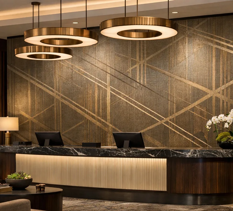 Durability and design are paramount in hotels. We install commercial vinyl wallpaper in guest corridors, lobbies, elevator bays, and amenity floors. Our team adheres to safety standards and can work outside guest hours.